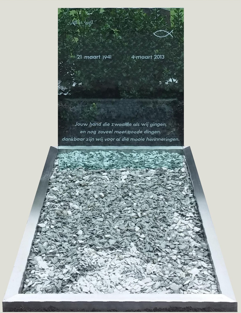 Hagens Natuursteen begeleidt u persoonlijk bij het ontwerp en de realisatie van een grafsteen met glas en/of staal, van eerste idee tot plaatsing op de begraafplaats.