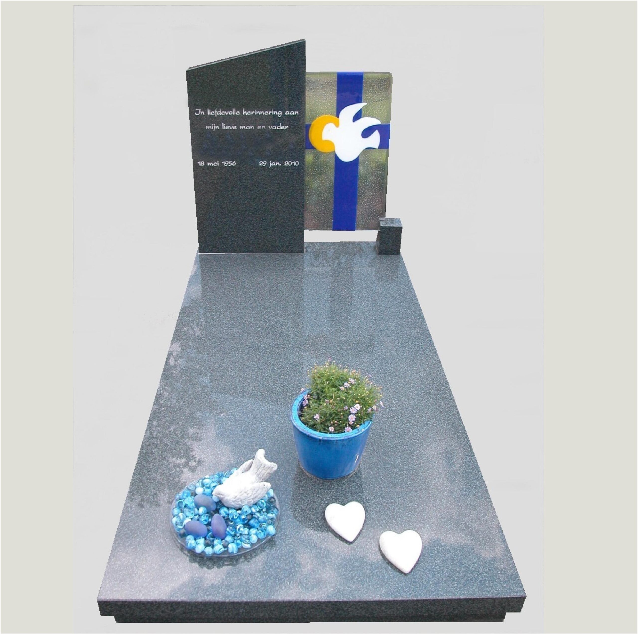 Elke grafsteen wordt door ons volledig op maat gemaakt, geheel naar uw persoonlijke wensen. Of het nu gaat om vorm, kleur, materiaal, belettering of een speciaal detail: samen met u creëren wij een grafmonument dat recht doet aan de herinnering aan uw dierbare.